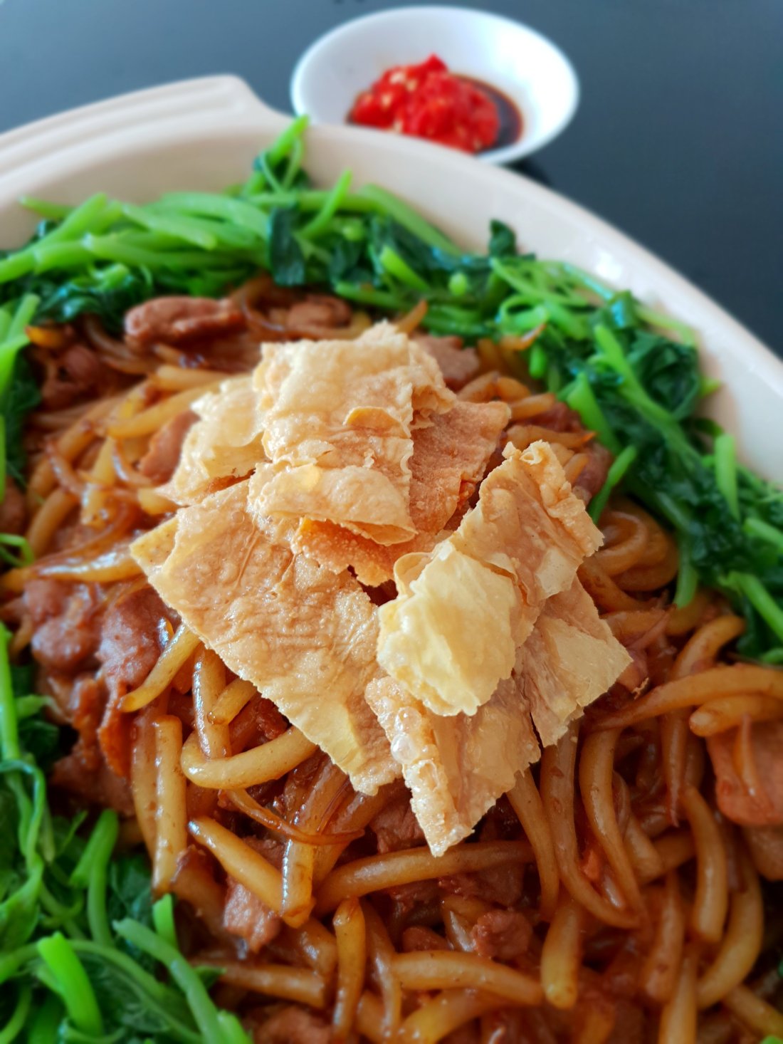 These noodles are fried with garlic, sliced pork, dark sweet sauce and fish sauce. Giving it a good balance of sweet and savoury taste. It may look simple, but when everything comes together, it taste amazing.