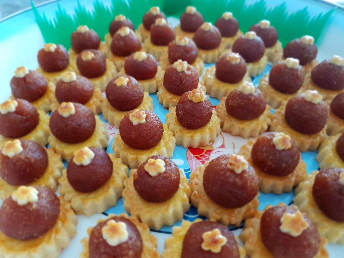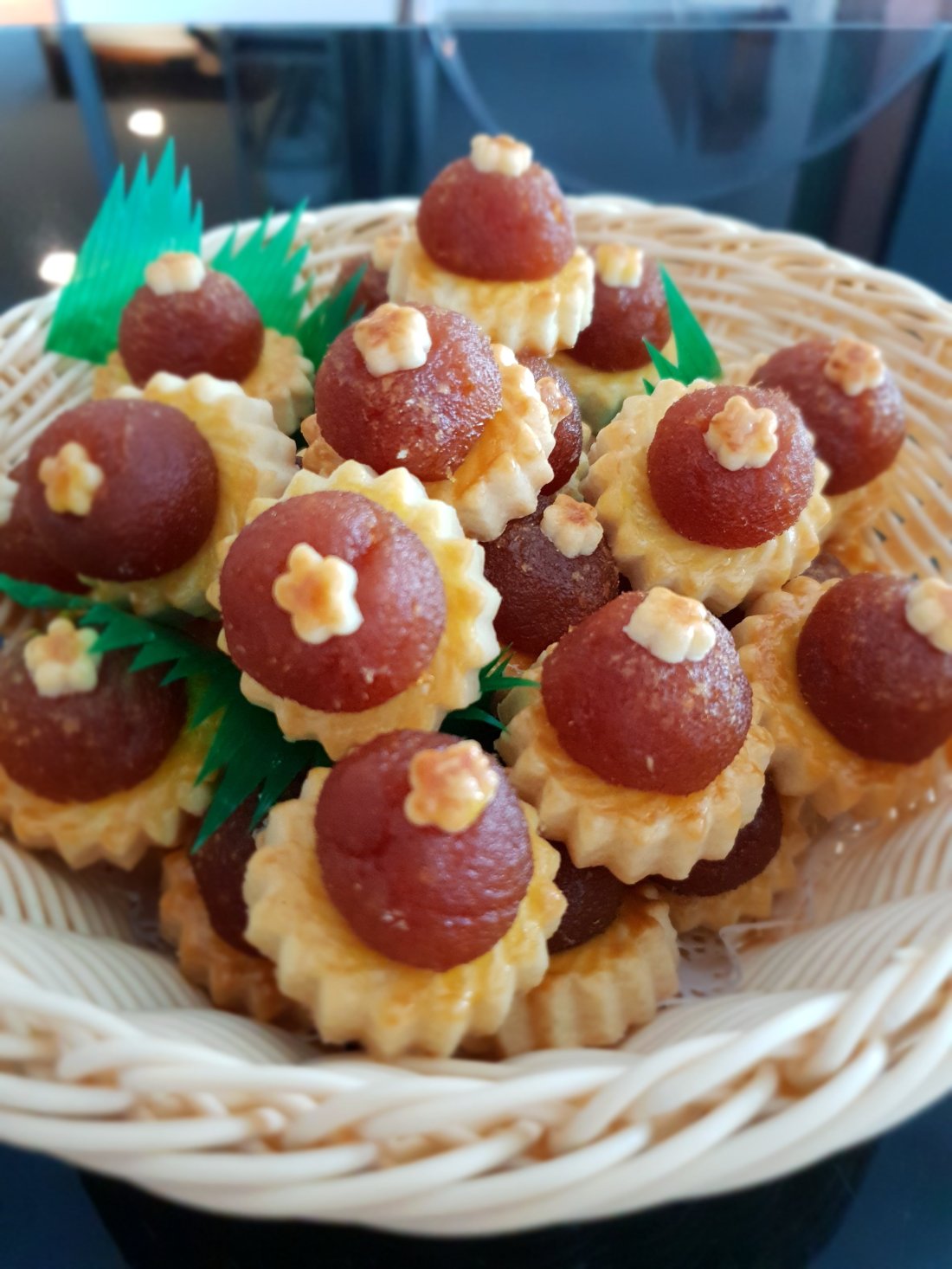 Pineapple tarts are small, bite-sized pastry either open or close-faced, top with or filled with pineapple jam.