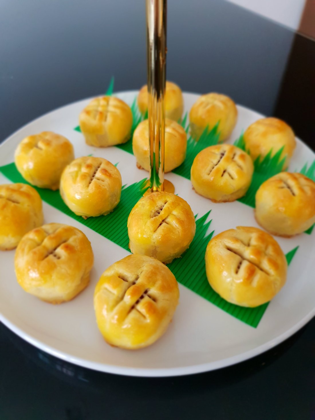 The salted egg yolk add a tinge of saltiness to the pastry and blends with the sweetness of the luscious pineapple fillings, complimenting it.