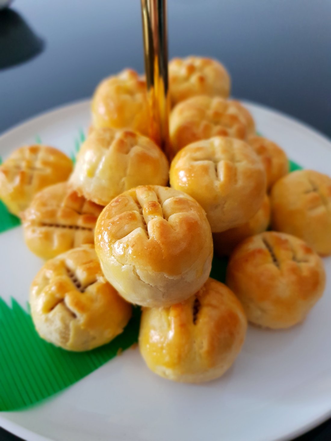 Pineapple (黄梨 – 旺来) sounds like arrival of prosperity, thus pineapple tart is a must-have in most households.